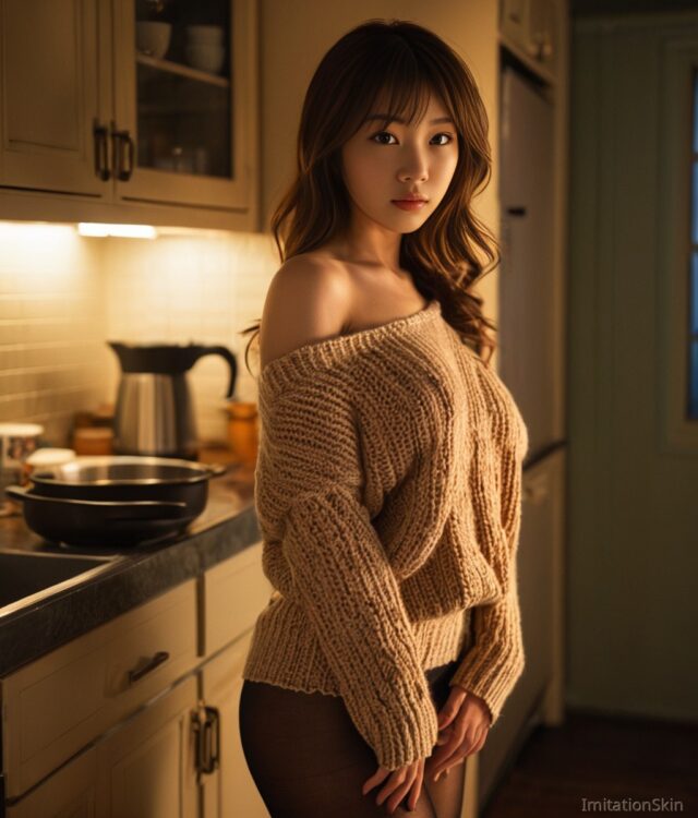 She stands where the world finally exhales.