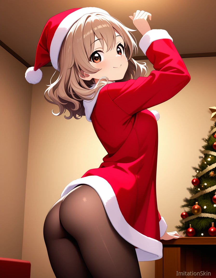 ノーパンに黒パンスト履いたサンタクロースのコスプレで〜す!